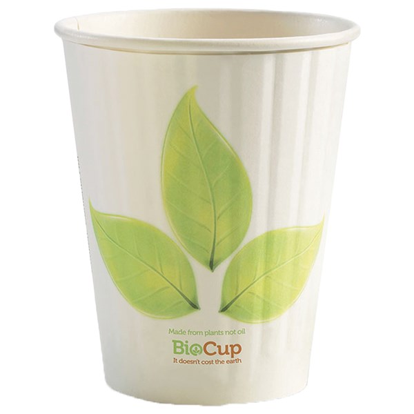 BIOCUP HOT SINGLE WALL CUP 8OZ 280ML PACK 50 LEAF