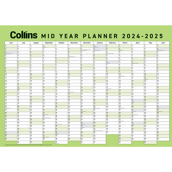 COLLINS MID YEAR WALL PLANNER LAMINATED A2 2024/ 2025
