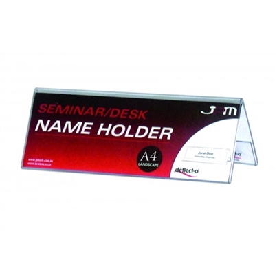 DEFLECTO DESK TENT STYLE SIGN HOLDER FOLDED LANDSCAPE A4 CLEAR