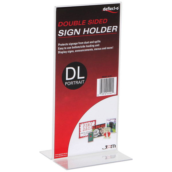 DEFLECTO SIGN HOLDER T-SHAPE DOUBLE SIDED PORTRAIT DL CLEAR