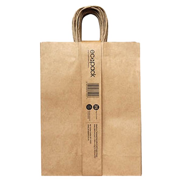 ECOPACK TWISTED HANDLE PAPER BAGS MEDIUM W260 X H360MM PACK 25