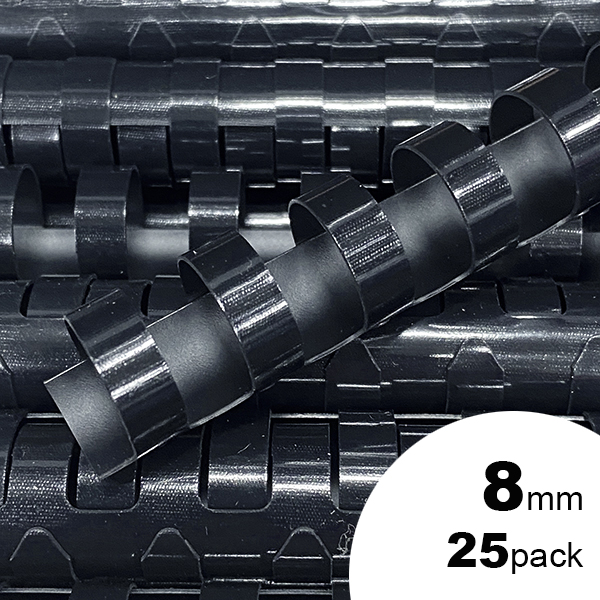 GBC PLASTIC BINDING COMB ROUND 21 LOOP 8MM A4 BLACK PACK 25