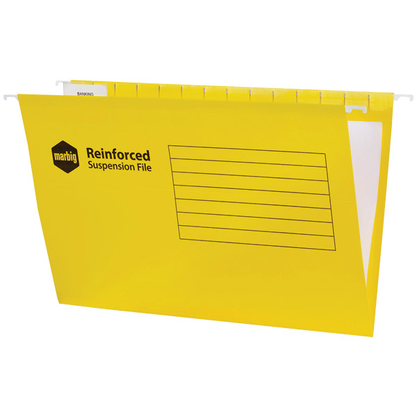 The Marbig suspension files come complete with tabs and inserts and are also available in a variety of colours