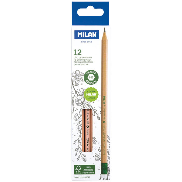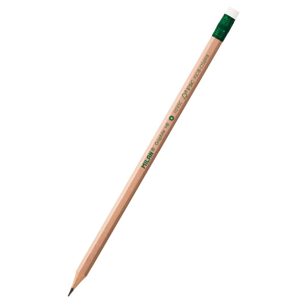 Milan FSC 100% HB graphite pencils with eraser.