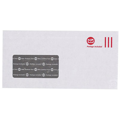 NZ POST ENVELOPE POSTAGE INCLUDED WINDOW SELF SEAL DLE W225 X L114MM WHITE PACK 100