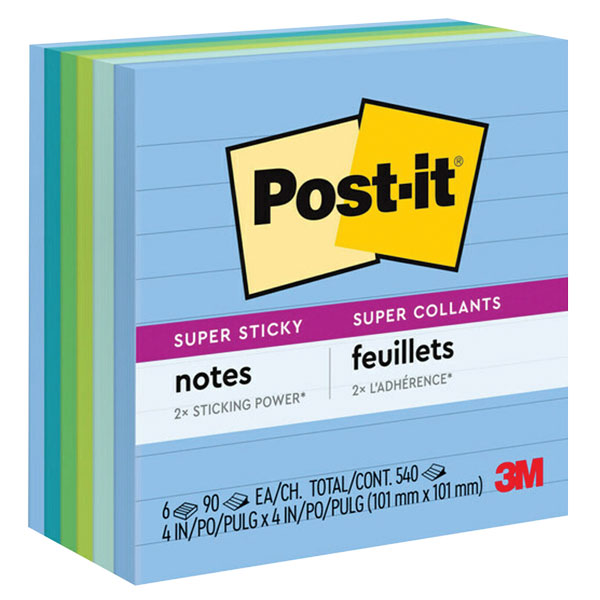 POST-IT 675-6SST RECYCLED SUPER STICKY LINED NOTES 98 X 98MM BORA BORA PACK 6