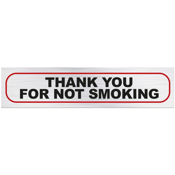 ROSEBUD SELF ADHESIVE SIGN ALUMINIUM W170 X L40MM THANK YOU FOR NOT SMOKING