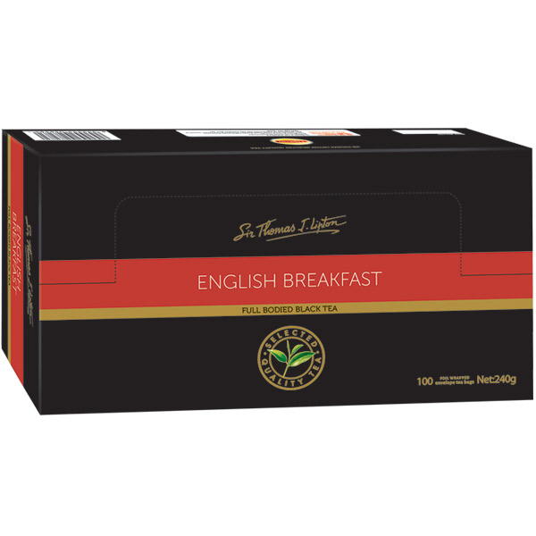 SIR THOMAS LIPTON TEA BAGS ENGLISH BREAKFAST FOIL ENVELOPED PACK 100