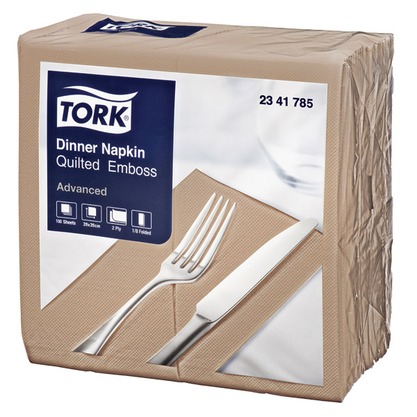 TORK 478145 LINSTYLE PAPER NAPKIN DINNER PREMIUM 1 PLY 8 FOLD EMBOSSED W390 X L390MM WHITE PACK 125