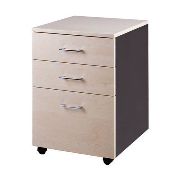 ZEALAND MOBILE 2 DRAWER 1 FILE LOCKABLE W465 X D500 X H660MM WASHED MAPLE