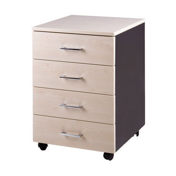 ZEALAND MOBILE 4 DRAWER LOCKABLE W465 X D500 X H660MM CARBON AND WASHED MAPLE